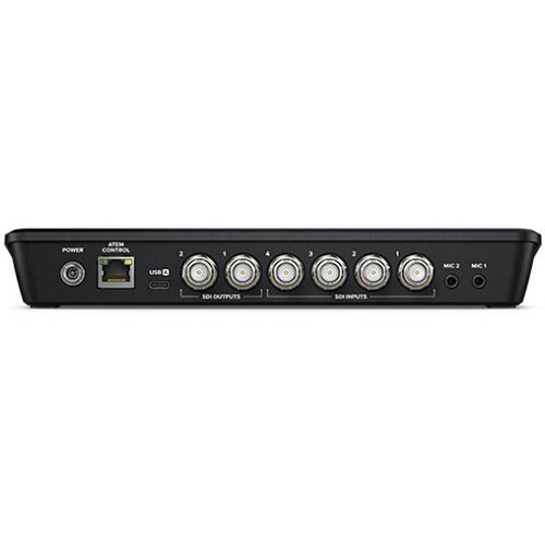 Designed for multicamera live streaming to the internet or broadcast applications, the compact ATEM SDI from Blackmagic Design provides gaming consoles, corporate computer streams, or HD cameras a four-input live-production switcher with an integrated control panel. The four SDI inputs are available on the rear of the chassis and they input up to 1080p60 video. Two 3G-SDI outputs are useful for a projector or external monitor, a USB Type-C output for streaming up to 1080p60 video to a computer, and an RJ45, 10/100 Ethernet port for system management, remote control, and upgrades.