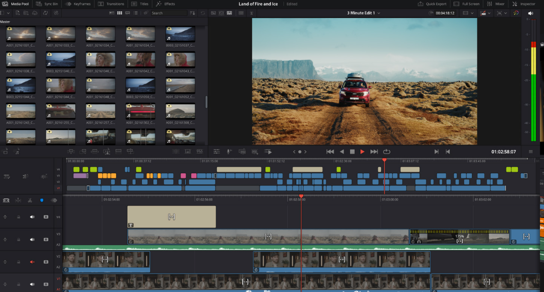 The cut page is perfect for projects with tight deadlines that you have to turn around quickly. The cut page has a streamlined interface that’s fast to learn and designed for speed. Features such as source tape, dual timelines, fast review, and smart editing tools help you work faster than ever. The sync bin and source overwrite tools let you quickly edit multicam programs. It’s also great for documentaries and now live broadcast editing and replay. Multi Source is the fastest way to see your cameras and edit to the timeline while the cameras are still recording! Everything on the cut page is action based so every click does something. That means you’ll spend more time editing and less time hunting for commands.