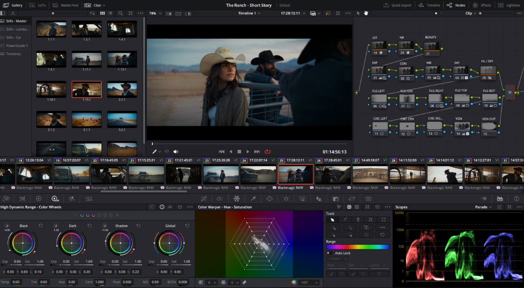 The DaVinci Resolve color page is Hollywood’s most advanced color corrector and has been used to color and finish more high end feature films and television shows than any other system! It’s also approachable with features designed to make it easier for new users to get great results while they continue to learn the advanced tools. For example, primary control sliders will be familiar to anyone who’s used image editing software, making it easy to adjust contrast, temperature, midtone detail, saturation and more. The color page has an incredible range of primary and secondary color grading features including PowerWindows™, qualifiers, tracking, advanced HDR grading tools and more!