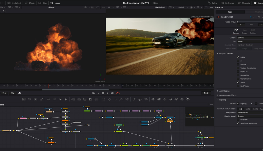 The Fusion page lets you create cinematic visual effects and broadcast quality motion graphics right inside of DaVinci Resolve! Fusion features a node based workflow that makes it faster and easier to create sophisticated effects and animations than you could ever create using a layer based approach. You get hundreds of 2D and 3D tools for visual effects and motion graphics, along with advanced animation curve and keyframe editors that allow you to create incredibly organic and realistic animations. Fusion has everything from point, planar and 3D camera tracking to rotoscope and keying tools for creating photorealistic composites, stunning animated titles, 3D particle systems and more!