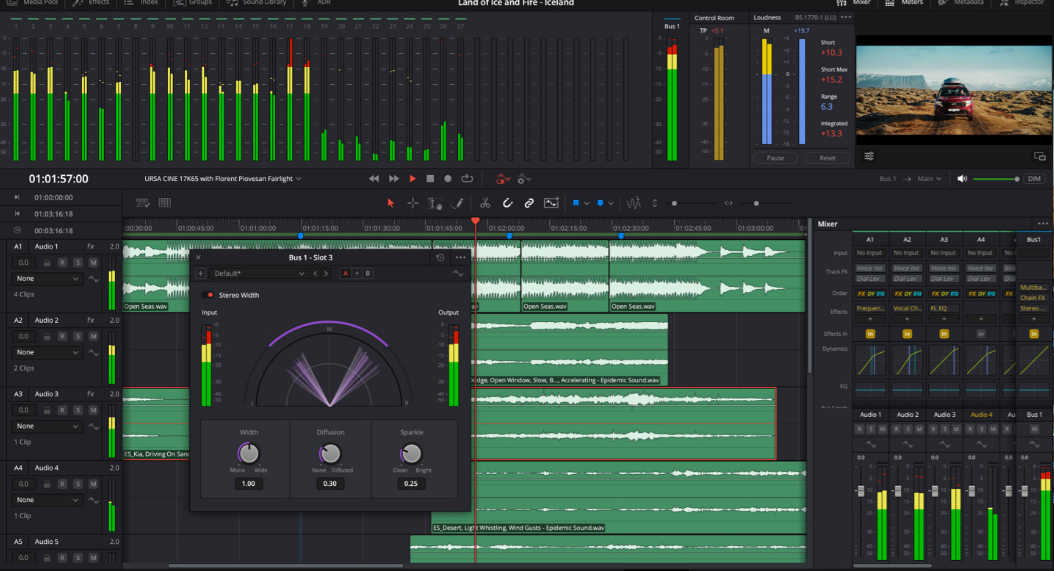 The Fairlight page features hundreds of pro tools for audio post production. It’s like having a professional digital audio workstation (DAW) built into your editing and color system! The Fairlight Audio Core lets you work with up to 2,000 tracks at a time with realtime effects, EQ, and dynamics processing! You get sample accurate editing tools, advanced ADR and Foley, and Fairlight FX such as reverb, de-esser, and hum remover, plus AI effects like Voice Isolation and Music Remixer and more. IntelliTrack AI tracking lets you use video to track the Fairlight audio panner and you can mix and master stereo, 5.1, 7.1, and even immersive 3D audio formats including 5th order ambisonics!