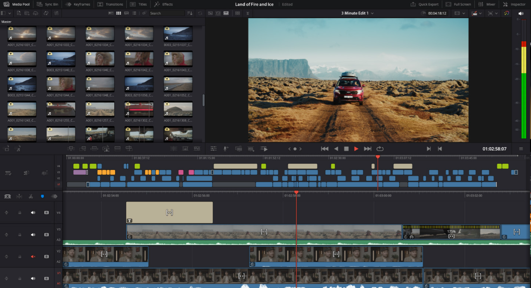 DaVinci Resolve is divided into "pages," each of which gives you a dedicated workspace and tools for a specific task. Editing is done on the cut and edit pages, visual effects and motion graphics on the Fusion page, color correction on the color page, audio on the Fairlight page, and media organization and output on the media and deliver pages. All it takes is a single click to switch between tasks!