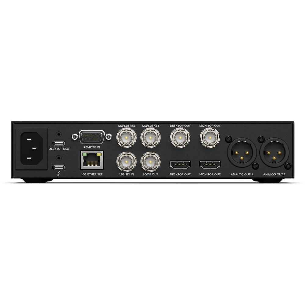The Blackmagic Media Player has lots of connections for monitoring, extended desktop and fast networking. All with a single Thunderbolt connection. The program fill and key outputs can be muted so video won't key on a switcher until the replay has started. Then the dedicated 12G-SDI and HDMI monitoring outputs are always active so you can setup the next replay. There's even balanced audio out for powered speakers. 12G-SDI video in allows live input monitoring of the switcher multiview for replay. Plus the 10G Ethernet provides fast assess to shared storage for accessing ISO video files. There's even an extended desktop for the DaVinci UI and a USB expansion for a keyboard and mouse.