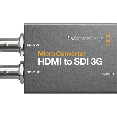 Super compact and rugged, the Micro Converter HDMI to SDI 3G from Blackmagic Design enables you to link HDMI cameras or computers to pro-style SDI (BNC) monitors or components. You can also use several units to extend HDMI over long distances using SDI cable. This compact converter has one HDMI input and two 3G-SD/HD/SDI outputs that can be set to Level A or B. It auto-detects and matches your HDMI input to the SDI output and is compatible with input/output resolutions up to 1080p60. The Micro Converter HDMI to SDI 3G features HDMI timecode support, SDI re-clocking for stability over long cable runs, and support for a wide range of pro broadcast resolutions including cine-style 48 fps.