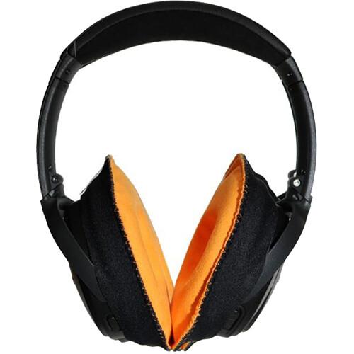 The orange Bluestar CanSkins are earcup covers designed to deliver enhanced comfort and appearance for Bose QuietComfort 35 wireless headphones in use on the go or during studio sessions. This pair of covers features soft, breathable synthetic chamois and neoprene rubber sides, allowing a secure fit and improved temperature regulation. Protect your headphones against sweat damage and enjoy longer periods of listening without inducing distortion or dampening. Simply stretch the CanSkins around your existing earcups; no tools required. Freshen them up in the washing machine or wash by hand.