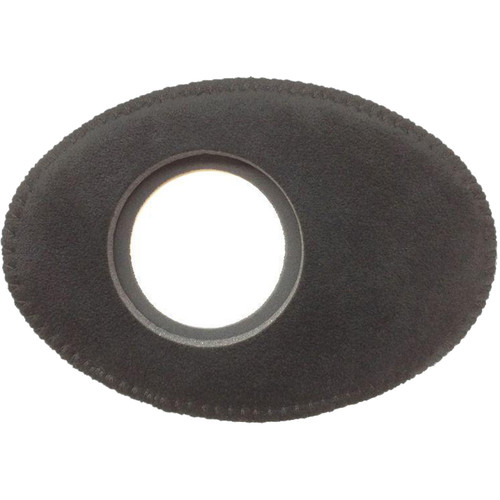 The Oval Extra-Large Viewfinder Eyecushion in black Ultrasuede, from Bluestar, features outside dimensions of 5.1 x 3.6" to securely fit over many common external and built-in viewfinders. These include the Alphatron, the Kamerar QV-1, VF-4, and VF-4+ EVFs, the MagView 3:2, 4:3, and 16:9 EVFs, those of the Canon C100, C200, C300, C500, XF300, XF305, and XF205 HD cameras, the EVFs of the Sony FS5, HVR-S270, HXR-NX100, and PXW-Z150 cameras, and many more. This Ultrasuede version is made of 100% non-woven material consisting of intertwined, brushed, ultra-fine fiber strands. It provides a high level of softness and a superior moisture absorption rate, and it can be used in any climate.
