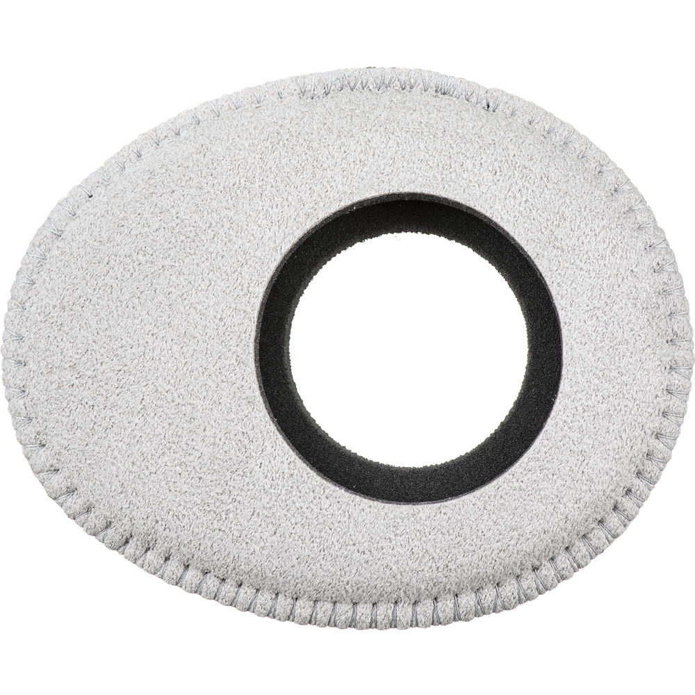 The Oval Large Viewfinder Eyecushion in gray Ultrasuede, from Bluestar, features outside dimensions of 4 x 3.2" to securely fit over many common external and built-in viewfinders. These include the viewfinders of the Sony VENICE, PDW-F800, FS-100, FS-700, F55, F5, EX3, and EX1, the Canon C700, JVC GY-100U, Panasonic VariCam 27F, VariCam 4K, DVCPRO HD, and DVX200 4K, and many more. This Ultrasuede version is made of 100% non-woven material consisting of intertwined, brushed, ultra-fine fiber strands. It provides a high level of softness and a superior moisture absorption rate, and it can be used in any climate.