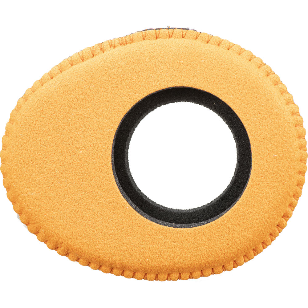 The Oval Large Viewfinder Eyecushion in orange Ultrasuede, from Bluestar, features outside dimensions of 4 x 3.2" to securely fit over many common external and built-in viewfinders. These include the viewfinders of the Sony VENICE, PDW-F800, FS-100, FS-700, F55, F5, EX3, and EX1, the Canon C700, JVC GY-100U, Panasonic VariCam 27F, VariCam 4K, DVCPRO HD, and DVX200 4K, and many more. This Ultrasuede version is made of 100% non-woven material consisting of intertwined, brushed, ultra-fine fiber strands. It provides a high level of softness and a superior moisture absorption rate, and it can be used in any climate.