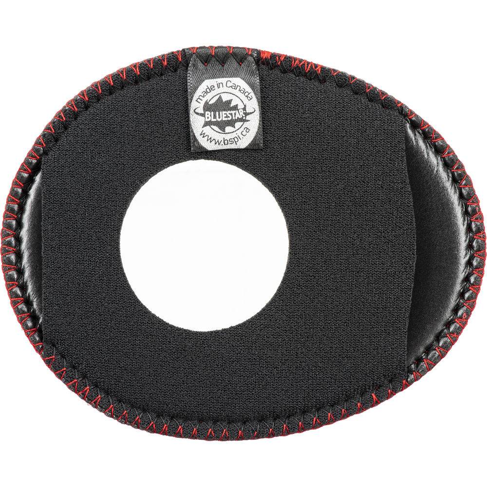 The Oval Large Viewfinder Eyecushion in red Ultrasuede, from Bluestar, features outside dimensions of 4 x 3.2" to securely fit over many common external and built-in viewfinders. These include the viewfinders of the Sony VENICE, PDW-F800, FS-100, FS-700, F55, F5, EX3, and EX1, the Canon C700, JVC GY-100U, Panasonic VariCam 27F, VariCam 4K, DVCPRO HD, and DVX200 4K, and many more. This Ultrasuede version is made of 100% non-woven material consisting of intertwined, brushed, ultra-fine fiber strands. It provides a high level of softness and a superior moisture absorption rate, and it can be used in any climate.