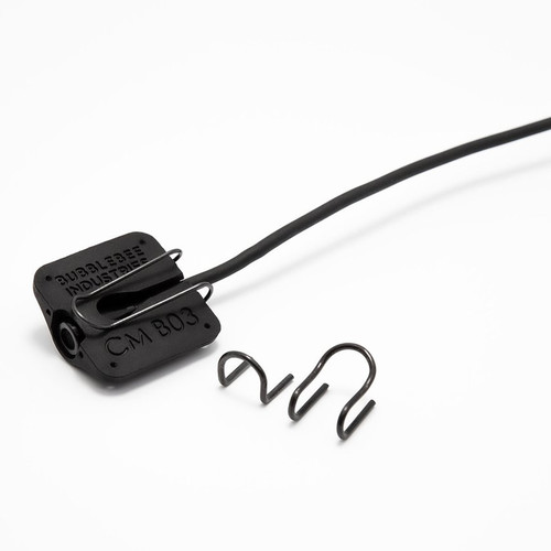 The black Bubblebee Industries Lav Concealer for Countryman B3 is for mounting the Countryman B3 lavalier microphone (available separately) on the body and inside clothing or costumes. This soft, pliable rubber mount can be used to affix the mic to surfaces while also acting as a shockmount and protecting the microphone capsule from vibrations and friction—making for better sound recordings. In addition, the Lav Concealer for Countryman B3 includes a metal clothing clip, a wire fabric guard, an extreme wire fabric guard for course fabrics, and six pieces of hypoallergenic Lav Concealer Tape.