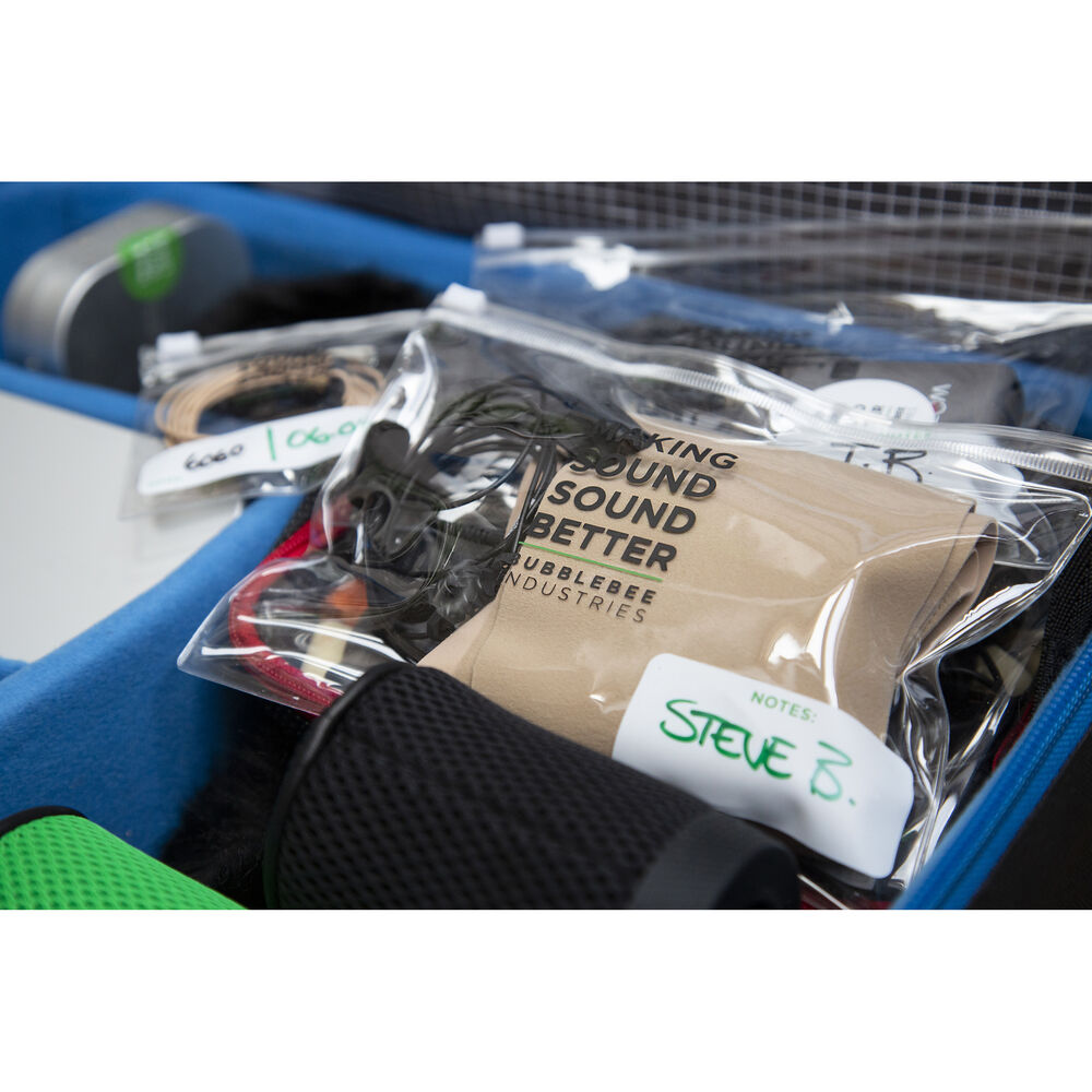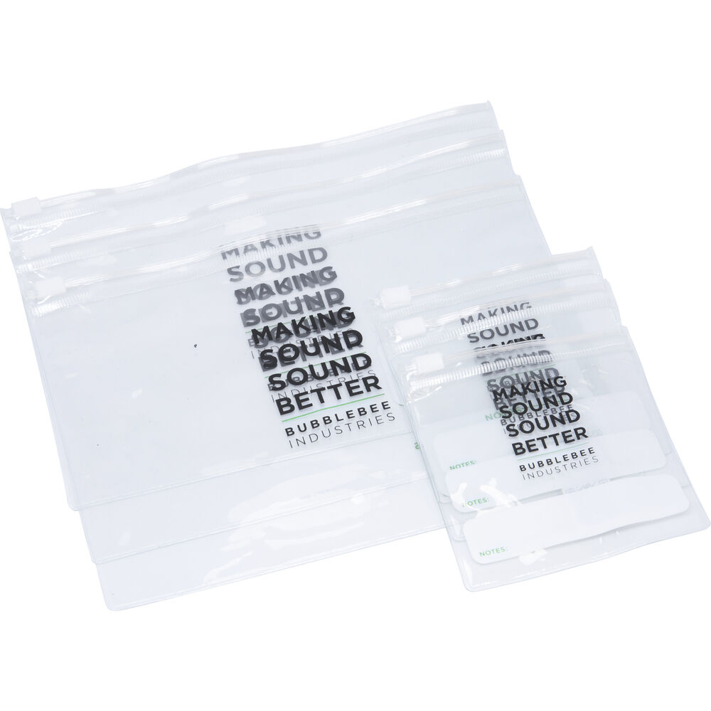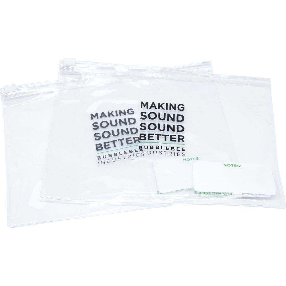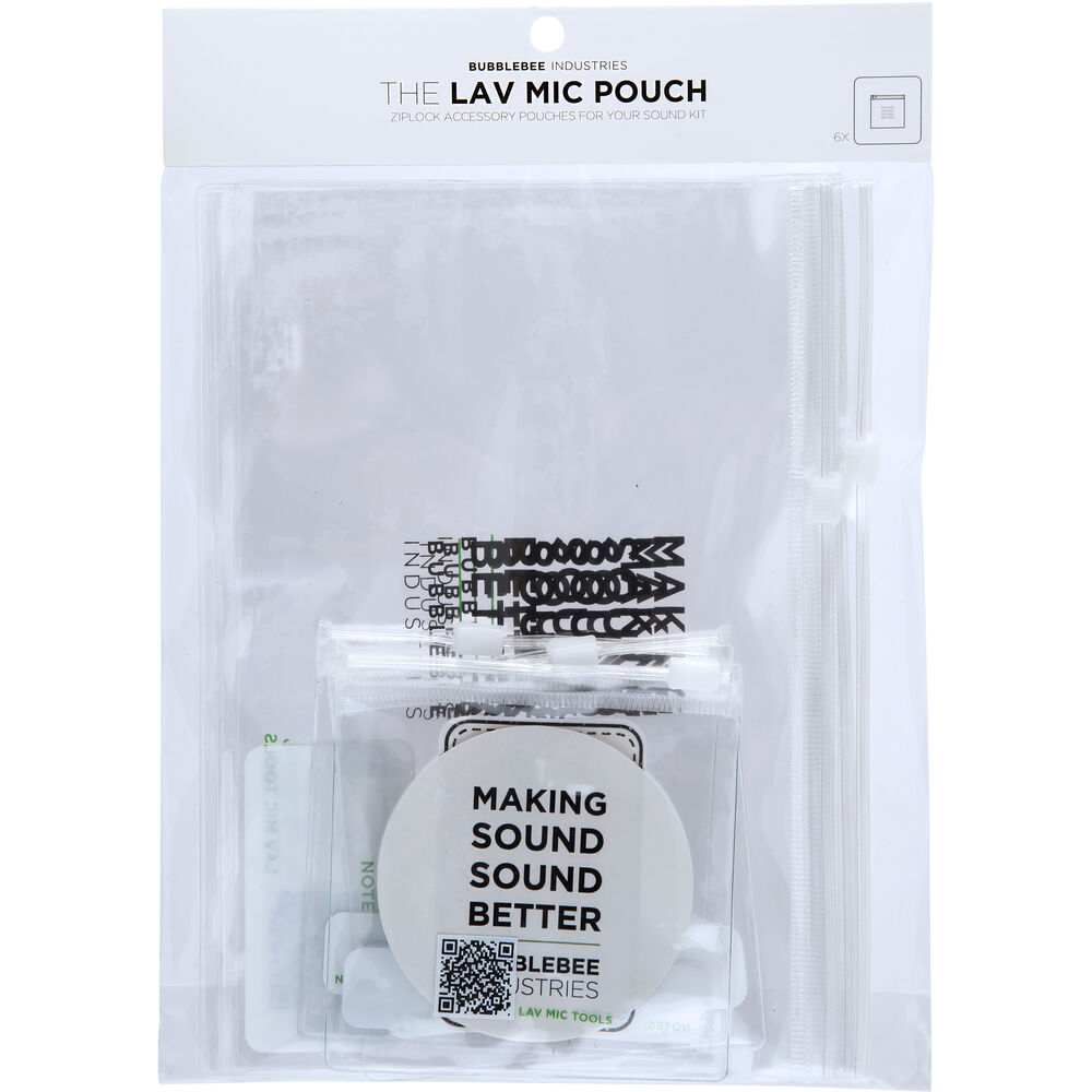 The Lav Mic Pouch from Bubblebee Industries contains 6 durable, transparent ziplock pouches to store and isolate your lavalier microphones before and after use—helping to keep talent and crew safe during production.