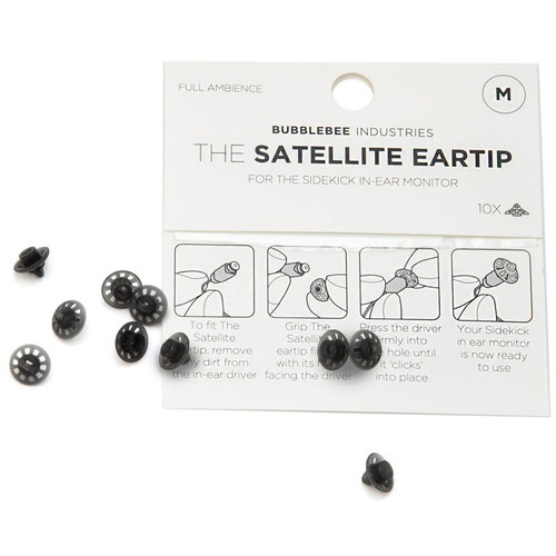The medium, 10-pack of The Sidekick Satellite Eartip from Bubblebee is an accessory eartip for the Sidekick In-Ear Monitor (sold separately). This eartip offers comfortable all-day wearability and full ambience of your environment, while still having crystal clear communication delivered to the left, right, or both ears.