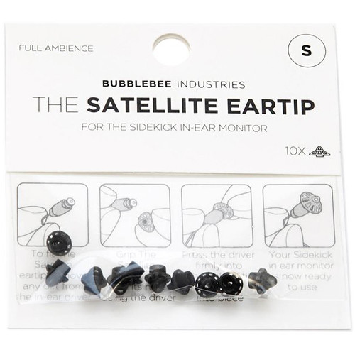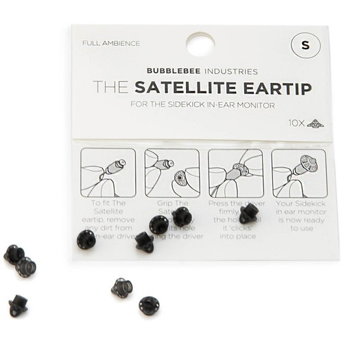The small, 10-pack of The Sidekick Satellite Eartip from Bubblebee is an accessory eartip for the Sidekick In-Ear Monitor (sold separately). This eartip offers comfortable all-day wearability and full ambience of your environment, while still having crystal clear communication delivered to the left, right, or both ears.