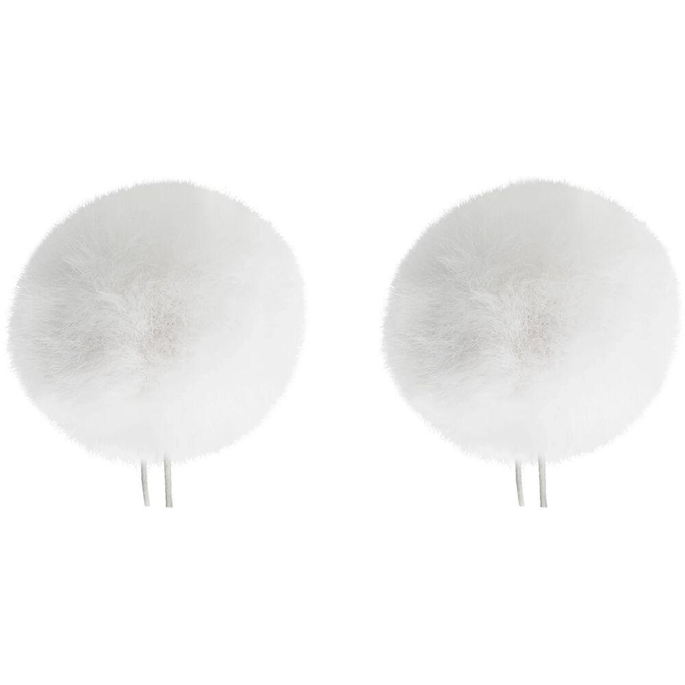 The Twin Windbubble Windscreens from Bubblebee Industries is a set of two white miniature imitation-fur windscreens that easily fit on lavalier microphones with a diameter of 0.3 to 0.5" (8 to 13mm). The tiny elastic-wire legs make it easy to mount them on the microphones. They can be used to reduce wind noise and vocal plosives in outdoor environments, and are designed to not fall off during use.