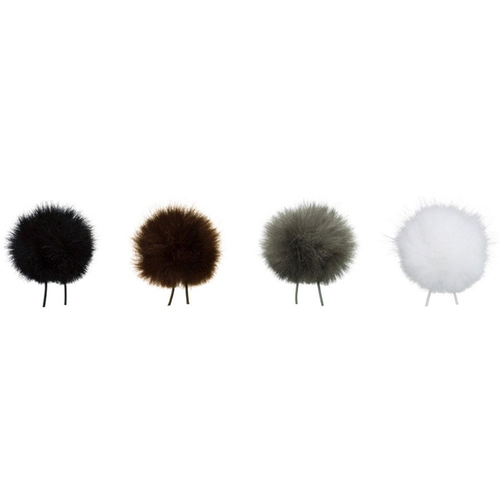 The four different colored Furry Windbubbles come in black, brown, gray, and white and are all the same size. They have been designed to fit the following microphones: Sanken COS-11 (with windscreen), Countryman B3, DPA 4060, and Sennheiser MKE2. Additionally, the tiny elastic-wire legs make it easy to mount the Windbubbles on lavalier microphones.