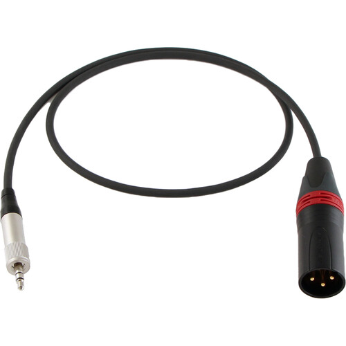 The 24" red 3.5mm TRS to 3-Pin XLRM Balanced Cable from Cable Techniques is a balanced audio cable with a 3.5mm TRS locking connector on one end, and a 3-pin XLR male jack on the other. It is designed for use with Sennheiser EK 2000 wireless receivers and devices with XLR inputs. It is also compatible with most devices that have matching connectors.