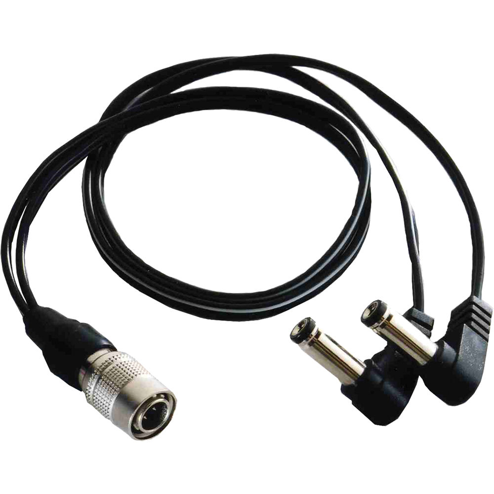 The BB-BAG-24/2 from Cable Techniques is a DC power cable designed for use with Lectrosonics receivers and ISO9VOLT/SMBATELIM battery eliminators. The cable is 24" long and has a Hirose connector on one end and a pair of right-angle single-conductor DC plugs on the other.