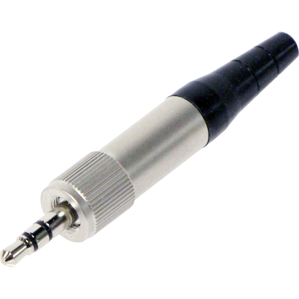 The CT-3.5TRS-DLX from Cable Techniques is a locking 3.5mm connector. It features nickel contacts and a rubber boot of sizable diameter. It is intended for use with Sennheiser G3/G4 and 2000 systems, as well as compatible Sony and Azden devices.