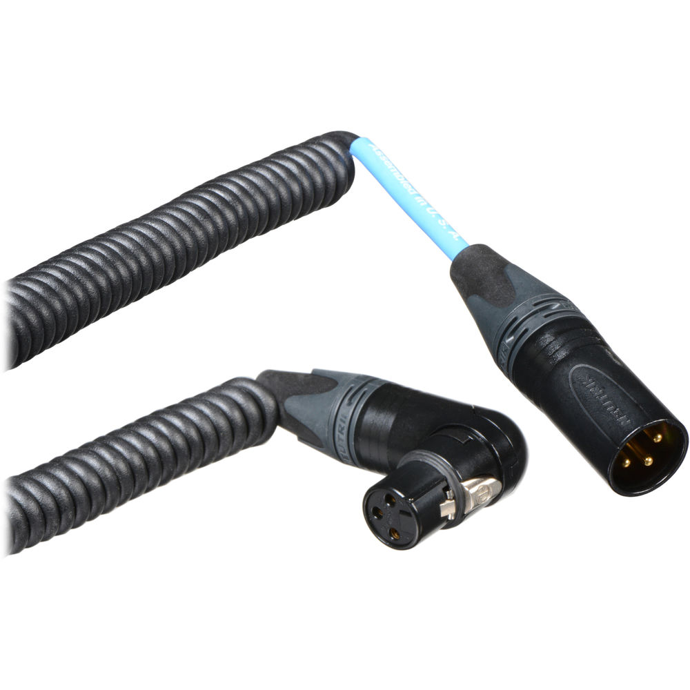 The Cable Techniques CT-CC-6 Coiled Camera-Mounted Shotgun Microphone Cable from Redding Audio is a 6" (15.24 cm) coiled cable that extends to 18” (45.72 cm). It is a cable with an XLR 3-pin right angle female and an XLR 3-pin male connector