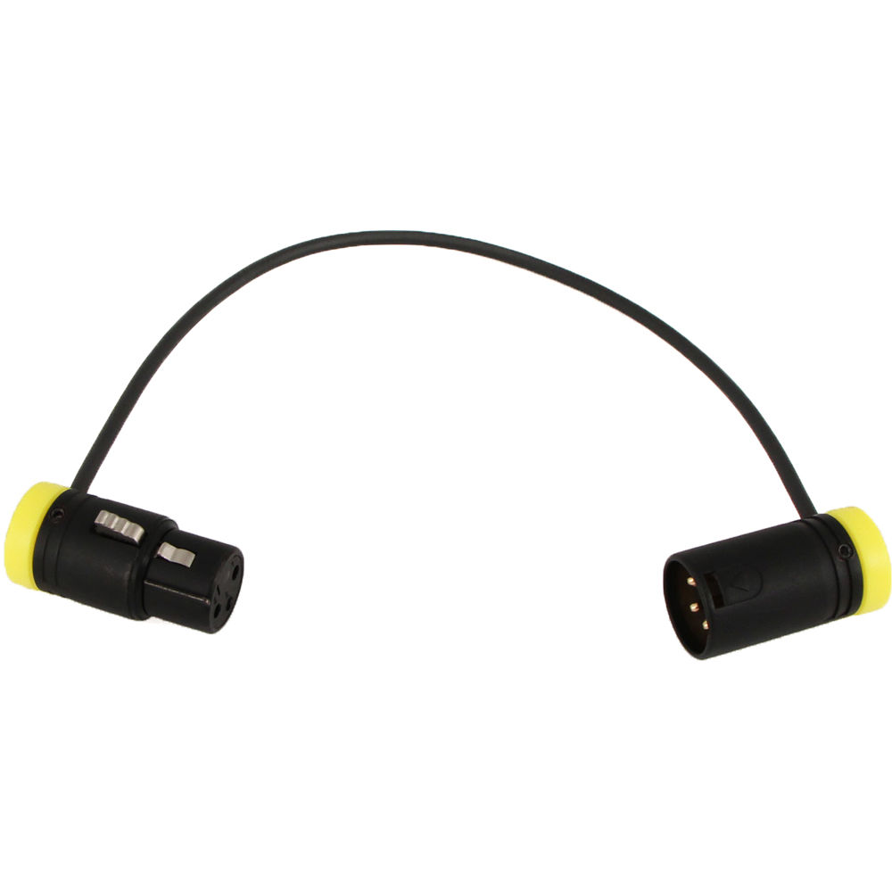 With its distinguishing yellow cap color, the Low-Profile, 3-Pin XLR Female to 3-Pin XLR Male Cable from Cable Techniques is a 10" XLR cable with an angle-adjustable, cable-outlet orientation. You can adjust the cable outlet from 30 to 150°, as well as the release-button angle from 210 to 330°, to better suit whichever device you're hooking into, be it a Sound Devices unit (the 633, 688, 788T, 302, and 552, for example), a Zaxcom device, a piece of Zoom gear, or other such location-audio kits. Lightweight at 1.5 oz, the cable has been built to promote minimal intrusion and preserve durability with its rugged, 3.2mm cable-jacket diameter and crush- and tear-resistant cable material.