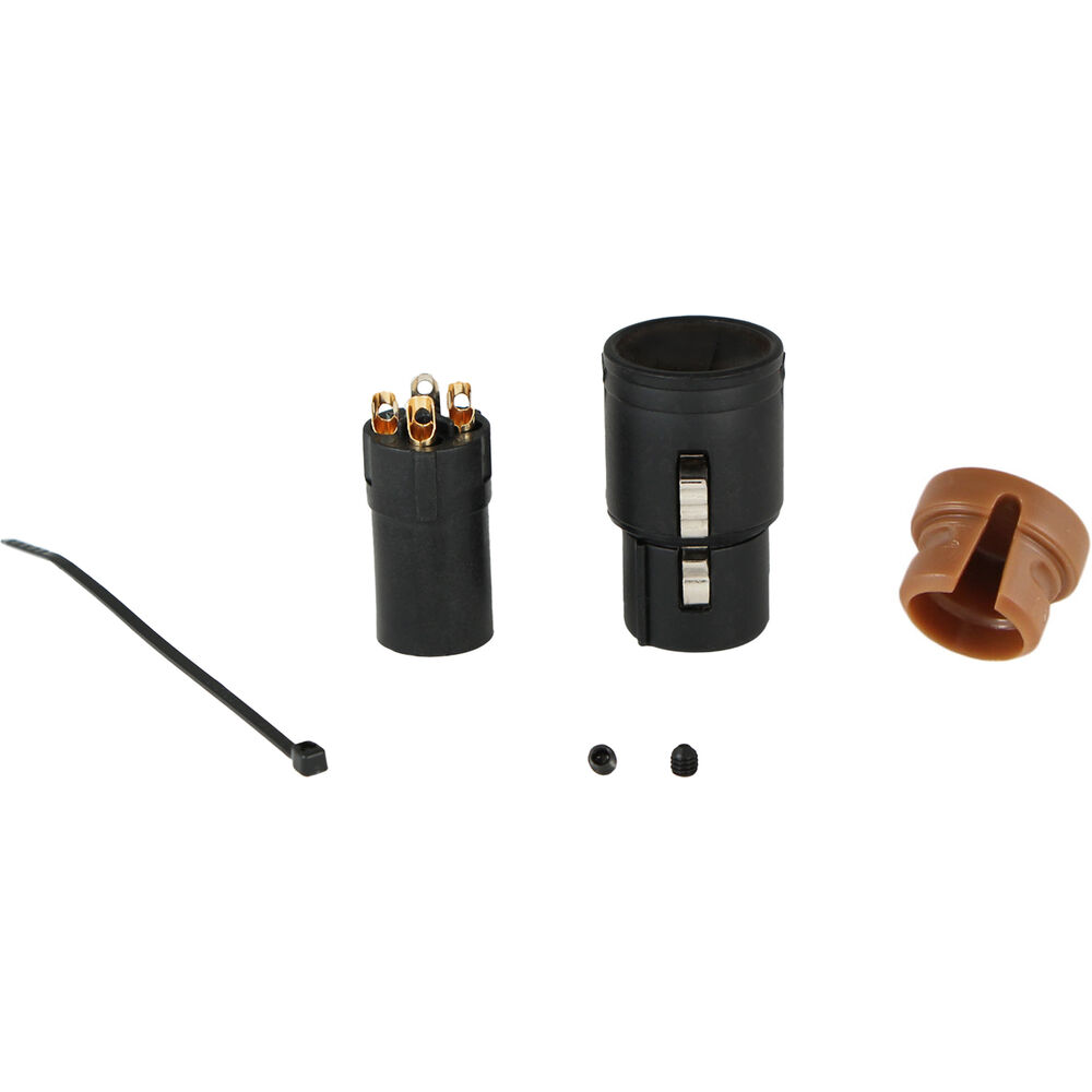 With its space-saving design, the Cable Techniques Low-Profile Right-Angle XLR 3-Pin Female Connector (Standard Outlet, B-Shell, Brown Cap) is ideal for use on portable recorders and field mixers in audio bags. Its standard cap has a cable outlet that accommodates cabling with diameters up to 3.4mm while offering 120 degrees of adjustment swing around the 6 o'clock and 12 o'clock positions, allowing perfect placement in an array of configurations. This variant features gold pins, a black shell, and a brown cap.