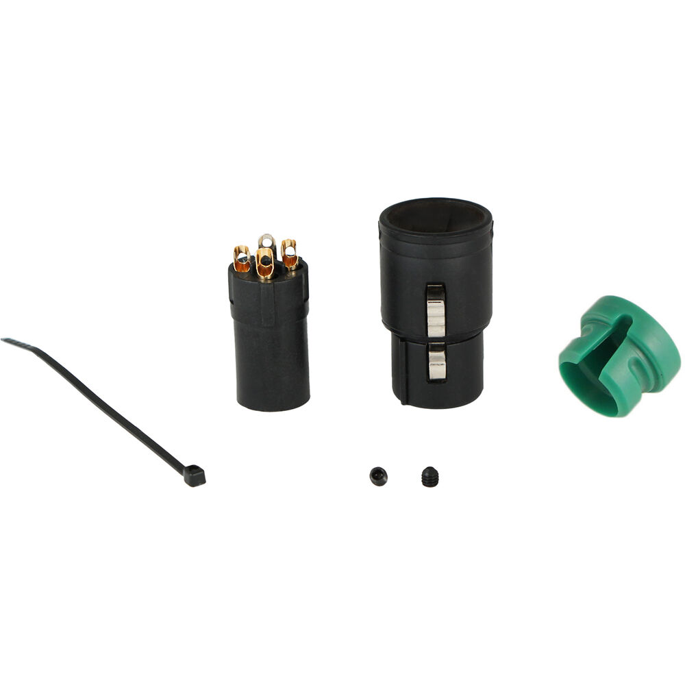 With its space-saving design, the Cable Techniques Low-Profile Right-Angle XLR 3-Pin Female Connector (Standard Outlet, B-Shell, Green Cap) is ideal for use on portable recorders and field mixers in audio bags. Its standard cap has a cable outlet that accommodates cabling with diameters up to 3.4mm while offering 120 degrees of adjustment swing around the 6 o'clock and 12 o'clock positions, allowing perfect placement in an array of configurations. This variant features gold pins, a black shell, and a green cap.