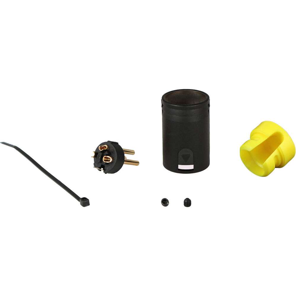 With its space-saving design, the Cable Techniques Low-Profile Right-Angle XLR 3-Pin Female Connector (Large Outlet, B-Shell, Yellow Cap) is ideal for use on portable recorders and field mixers in audio bags. Its large cap has a cable outlet that accommodates cabling with diameters from 3.8 to 6mm while offering 120 degrees of adjustment swing around the 6 o'clock and 12 o'clock positions, allowing perfect placement in an array of configurations. This variant features gold pins, a black shell, and a yellow cap.