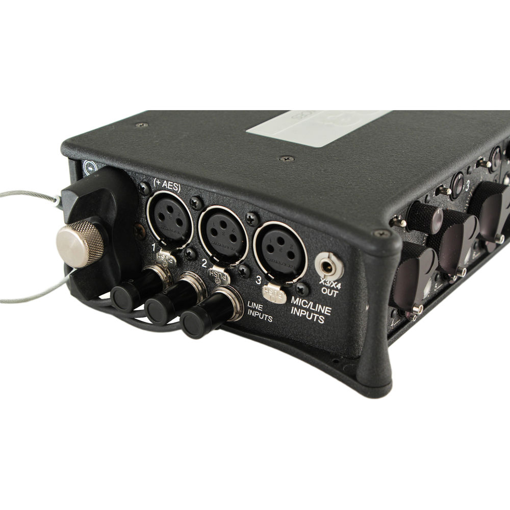 The 18" Cable Techniques Right-Angle, Locking 3.5mm TRS to Unbalanced, Low-Profile TA3F Cable is designed to make it easy to record the output of a compatible wireless receiver to the line input on a field mixer with a TA3M input jack, including the 633, 688, and 664 models from Sound Devices.