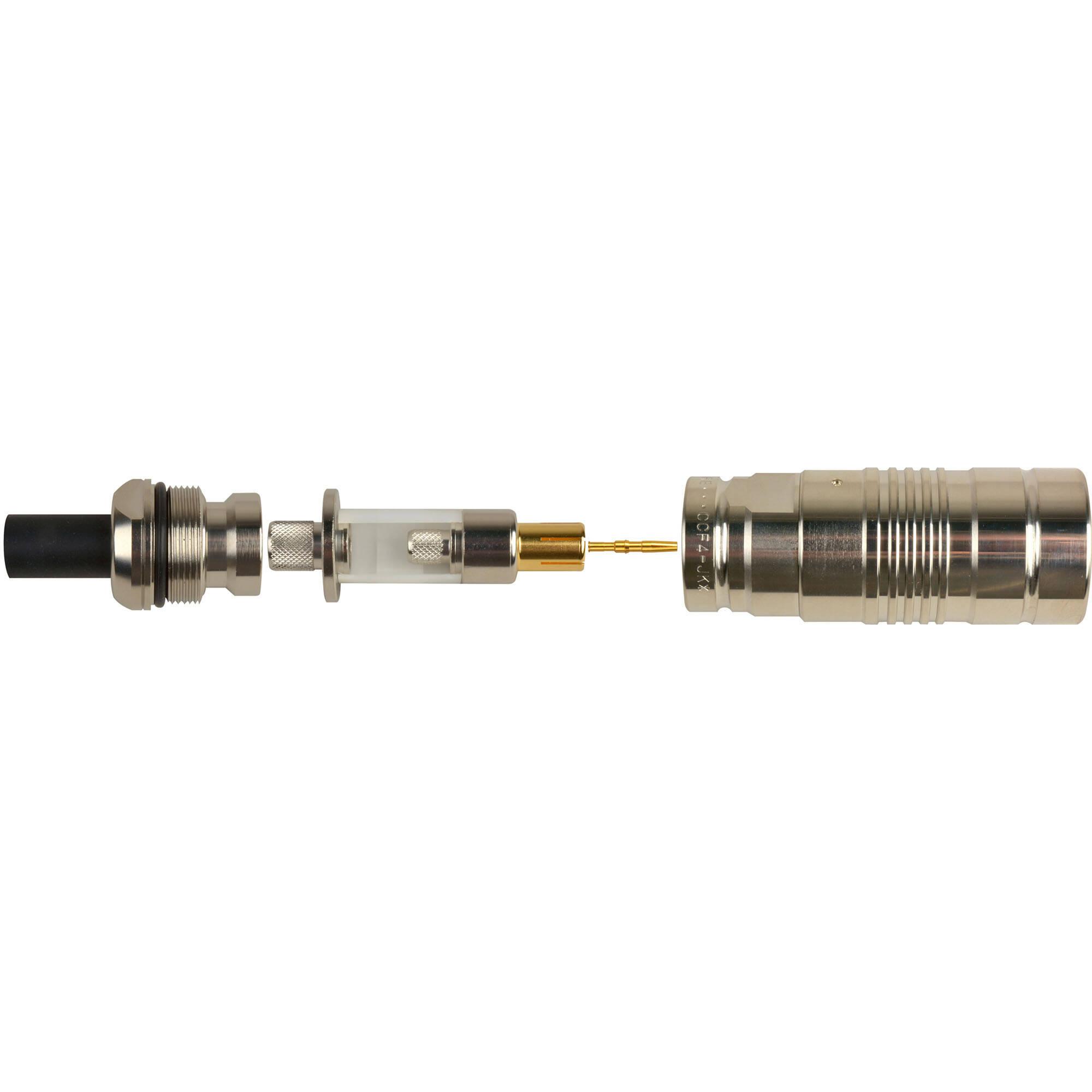 This female Tri-K Pro Triax Connector from Canare features a push-lock mechanism for stress free detachment. The mechanism helps prevent accidental disconnection. Made to work with Canare L-4CFTX cable, as well as Belden 9267, 1856A, 1857A, and Gepco LVT 61859 or VT 61859. This connector is fully compatible with Kings triaxial connectors, it supports operating frequencies up to 2.0 GHz.
