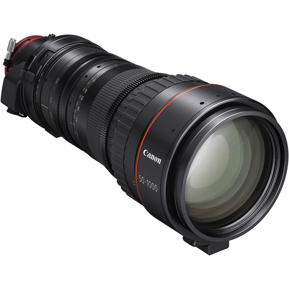 The CINE-SERVO 50-1000mm T5.0-8.9 with PL mount from Canon is designed to combine the functionality and form factor of a broadcast, ENG-style-servo zoom lens with the optical precision of a cinema zoom. The lens is designed for use on cinema cameras with Super 35 sized sensors and is suitable for 4K acquisition. With a detachable drive mechanism and support for rod attachment, it is designed to be equally at home whether being used by a solo camera operator or a full production team. The lens features a 20x optical zoom and a focal length range of 50 to 1000mm with a maximum T stop of 5.0 at the wide end. The lens features a built-in 1.5x extender providing a 75 to 1500mm zoom range, capable of supporting 4K resolution.