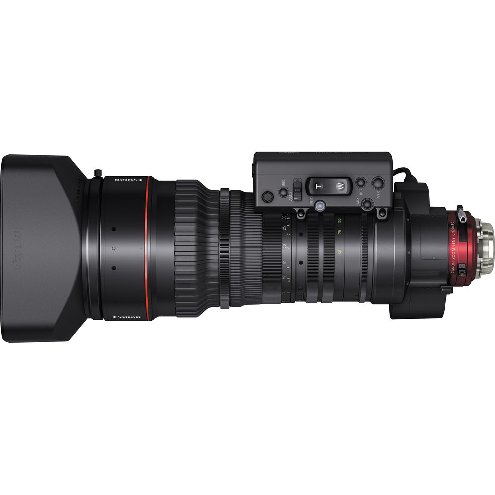 The lens features the same 12-pin camera interface for power and serial data as found on regular Canon broadcast lenses