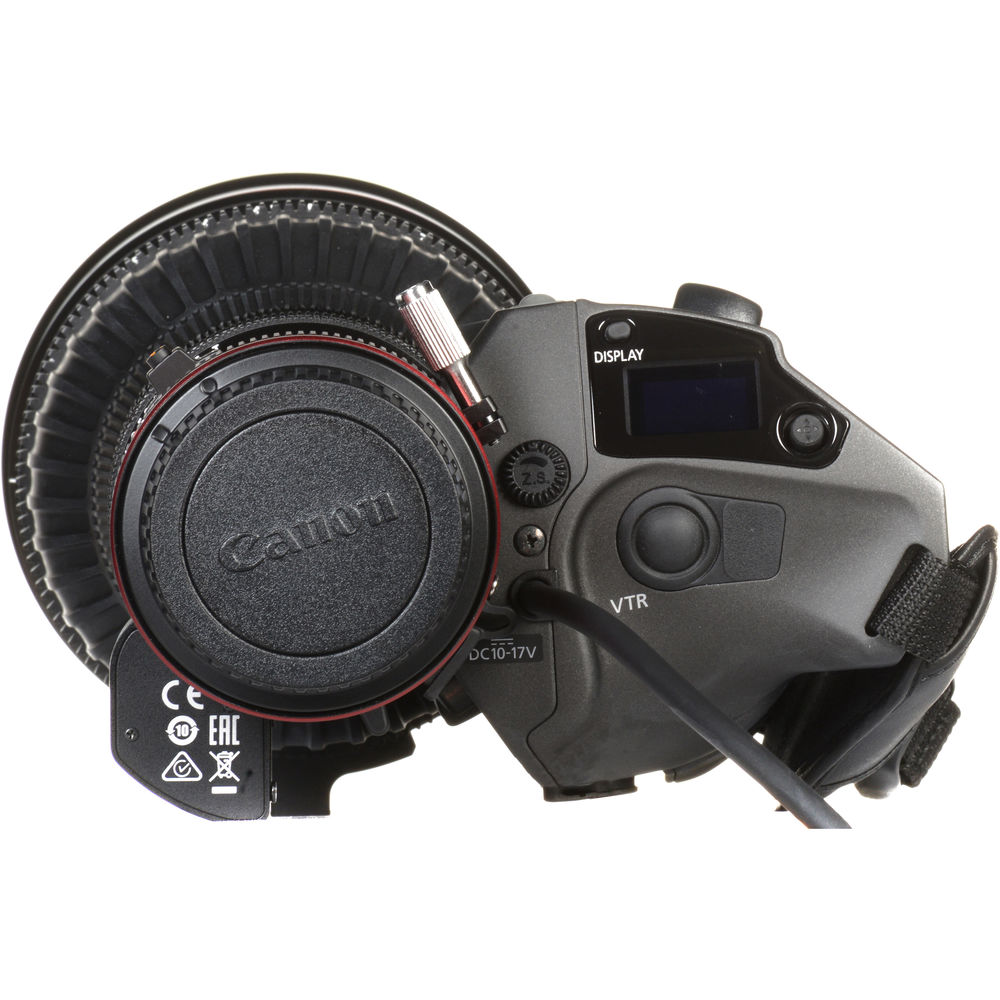 The lens features the same 12-pin camera interface for power and serial data as found on regular Canon broadcast lenses