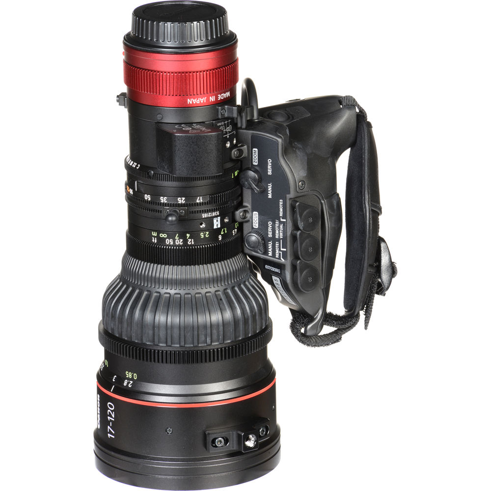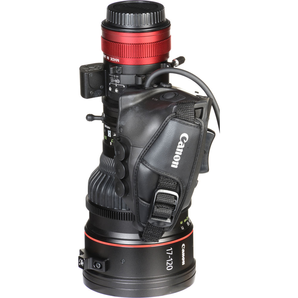 With a 17 to 120mm focal length, the lens features 7x zoom and has a maximum aperture of T 2.95 when set to 91mm or wider. Additionally, it features an 11 blade iris to create circular bokeh patterns as well as to reduce refraction. For ENG-style shooters the lens drive features servo motors powering zoom, focus, and iris. The lens can be connected to the camera either using a standard 12-pin connector or will communicate directly through the lens mount when attached to compatible cameras. Three 20-pin connectors below the servo housing allow many Canon and third-party zoom, focus, and iris controllers to be connected.