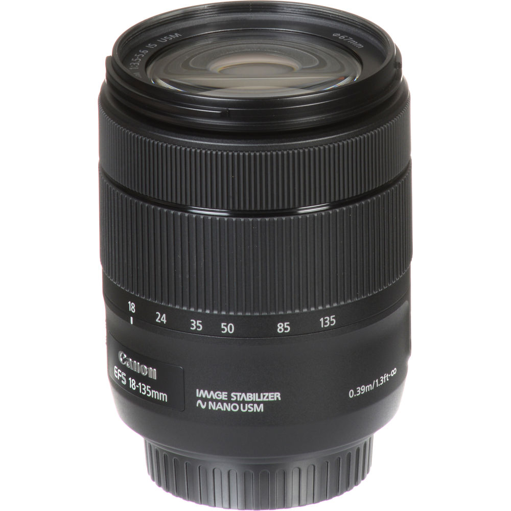 A versatile zoom optimized for both stills and video, the EF-S 18-135mm f/3.5-5.6 IS USM from Canon is a 28.8-216mm equivalent lens designed for APS-C-format DSLRs. Incorporating NANO USM technology, this lens is characterized by its combination of a fast, stills-optimized ring-type Ultrasonic Motor and smooth, silent video-optimized stepping motor for all-around focusing performance to benefit multimedia image-makers. This dual-purpose AF motor also offers notably quicker performance throughout the zoom range for more responsive shooting from near to far. Additionally, also aiding both photo and movie recording, an Image Stabilizer system compensates for up to four stops of camera shake for sharper handheld shooting. The lens is also compatible with the optional PZ-E1 Power Zoom Adapter for more natural and controllable zooming performance. Updated to suit the increasing presence of video in a photographer's workflow, this zoom is versatile in regard to both focus handling as well as with its wide-angle to telephoto reach.