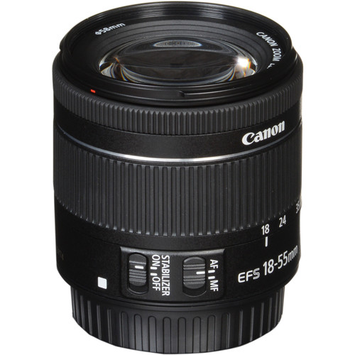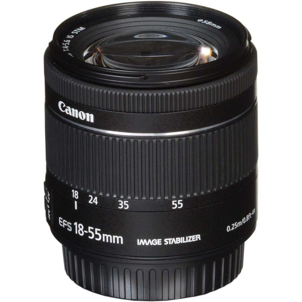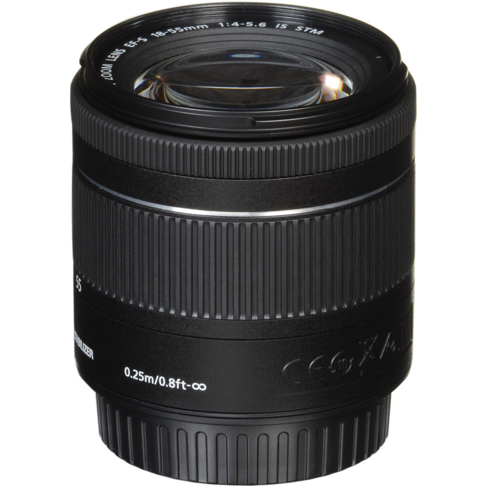A versatile standard zoom for Canon APS-C-format DSLRs, the EF-S 18-55mm f/4-5.6 IS STM Lens is a sleek and flexible option for everyday shooting. Spanning a 28.8-88mm equivalent focal length range, this lens covers wide-angle to portrait-length perspectives, and features an Optical Image Stabilizer to minimize the appearance of camera shake by up to four stops for sharper handheld shooting. One aspherical element is featured in the optical design to improve sharpness and resolution by minimizing spherical aberrations and distortion, and a Super Spectra coating has also been applied to suppress flare and ghosting. Additionally, an STM stepping AF motor is used to realize quick and near-silent autofocus performance along with full-time manual focus override.