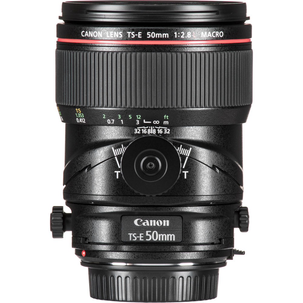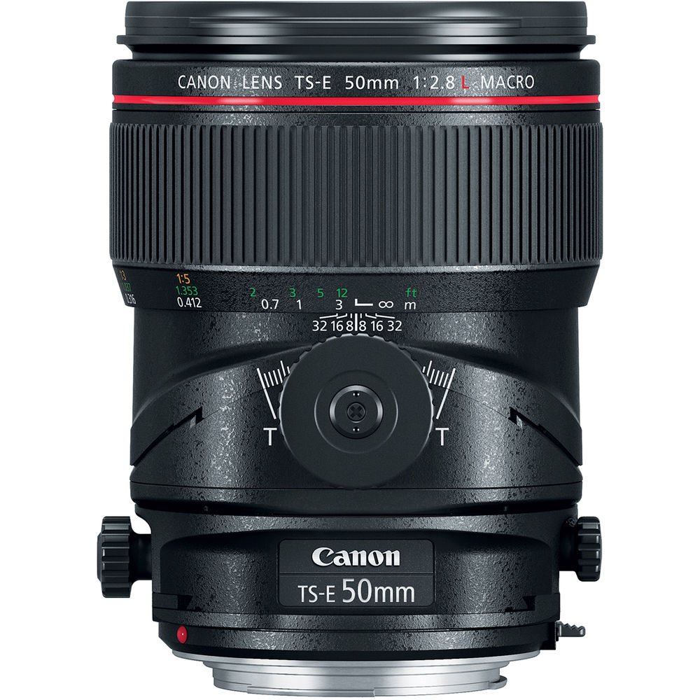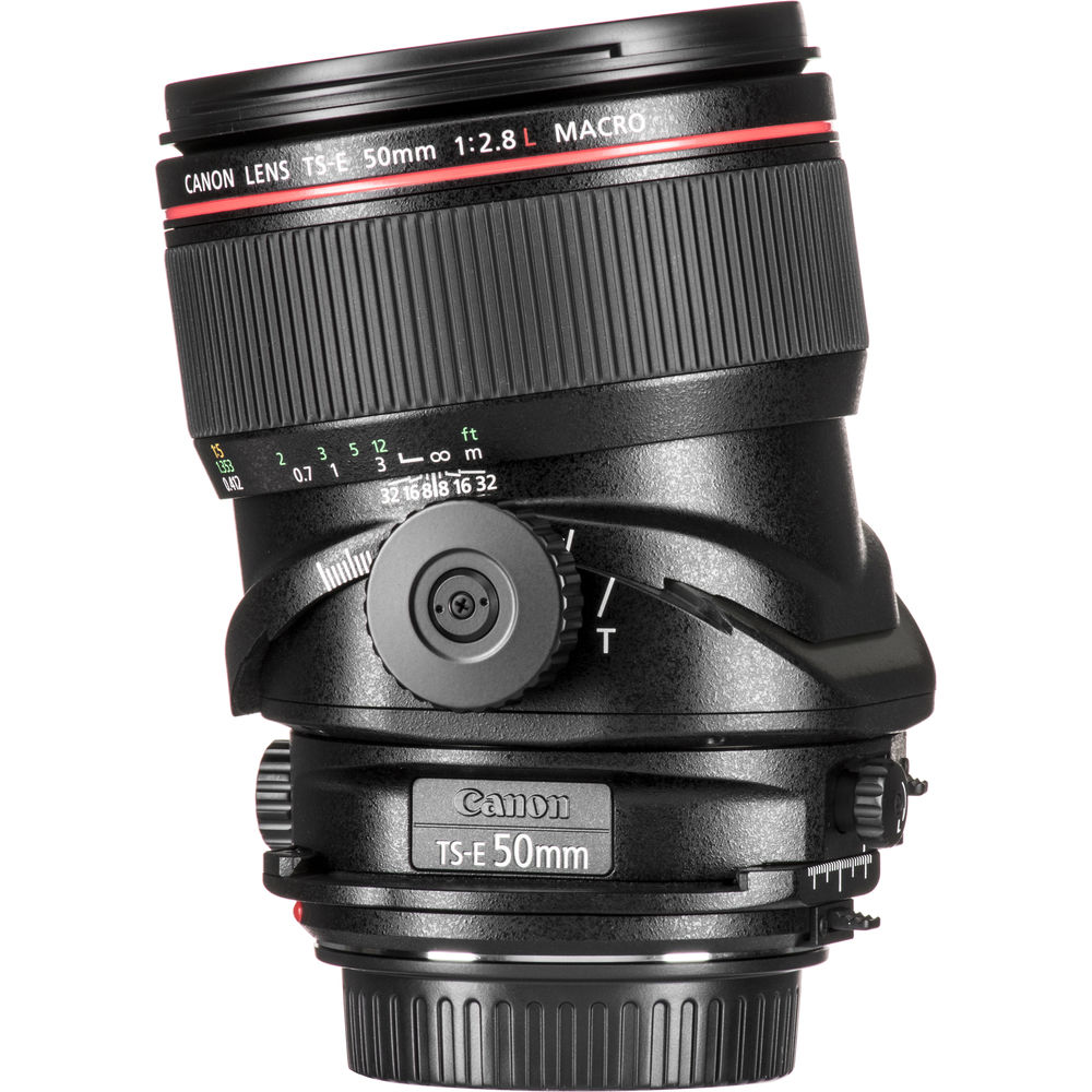 Characterized by its close-focusing and perspective control capabilities, the TS-E 50mm f/2.8L Macro from Canon is a normal-length tilt-shift lens well-suited for product, tabletop, architectural, and interior photography. Up to +/- 8.5° of tilt is possible, for focus control, and +/- 12mm of shift, to adjust perspective and composition, and a tilt-locking mechanism can be used while shooting for more stability. A minimum focus distance of 10.6" and a maximum magnification of 0.5x are also benefitted by the range of movements for more control over depth of field when photographing close-up subjects.