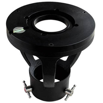 The Cartoni D846 Bazooka Basket with flat base mount allows impromptu camera setups with flat base (Mitchell) fluid heads on the end of a sturdy post when shooting in confined spaces.