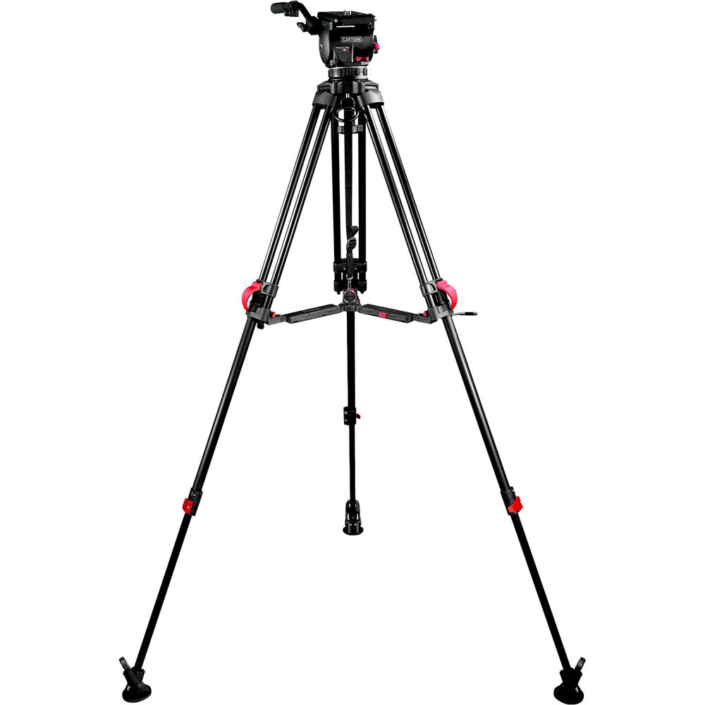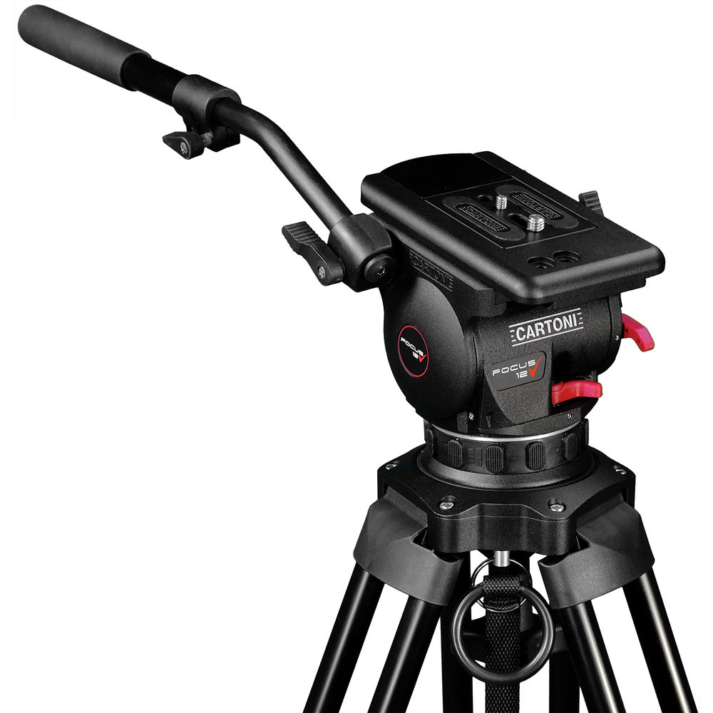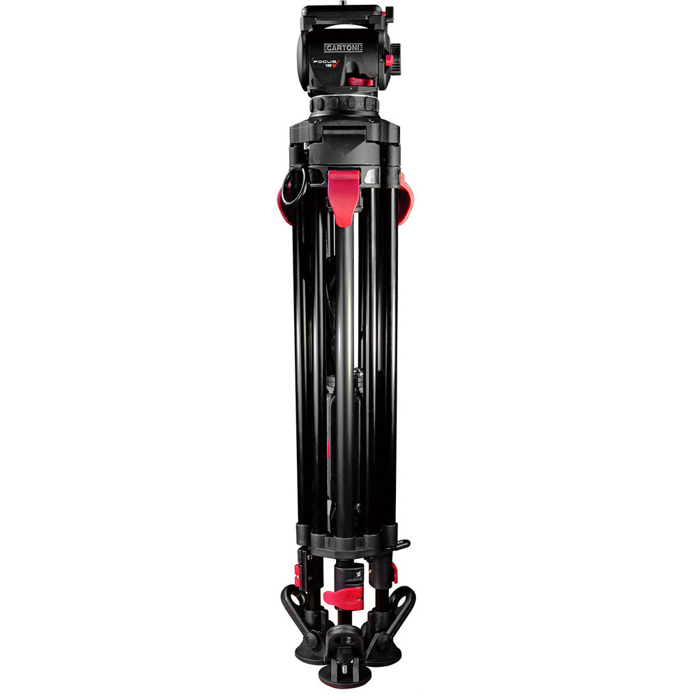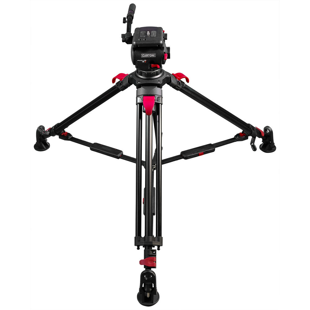 The lightweight Focus 12 Red Lock System from Cartoni pairs the Focus 12 fluid head with the Red Lock tripod. Designed for quick, on-the-go video capture, this 100mm ball system supports up to 26 lb, ranges from 26 to 64" in height, and features continuously variable pan and tilt drag for precise control. The tripod's red lever locks are easily distinguishable, and its SDS mid-level spreader has a dual-extension design that enables extremely low shots.