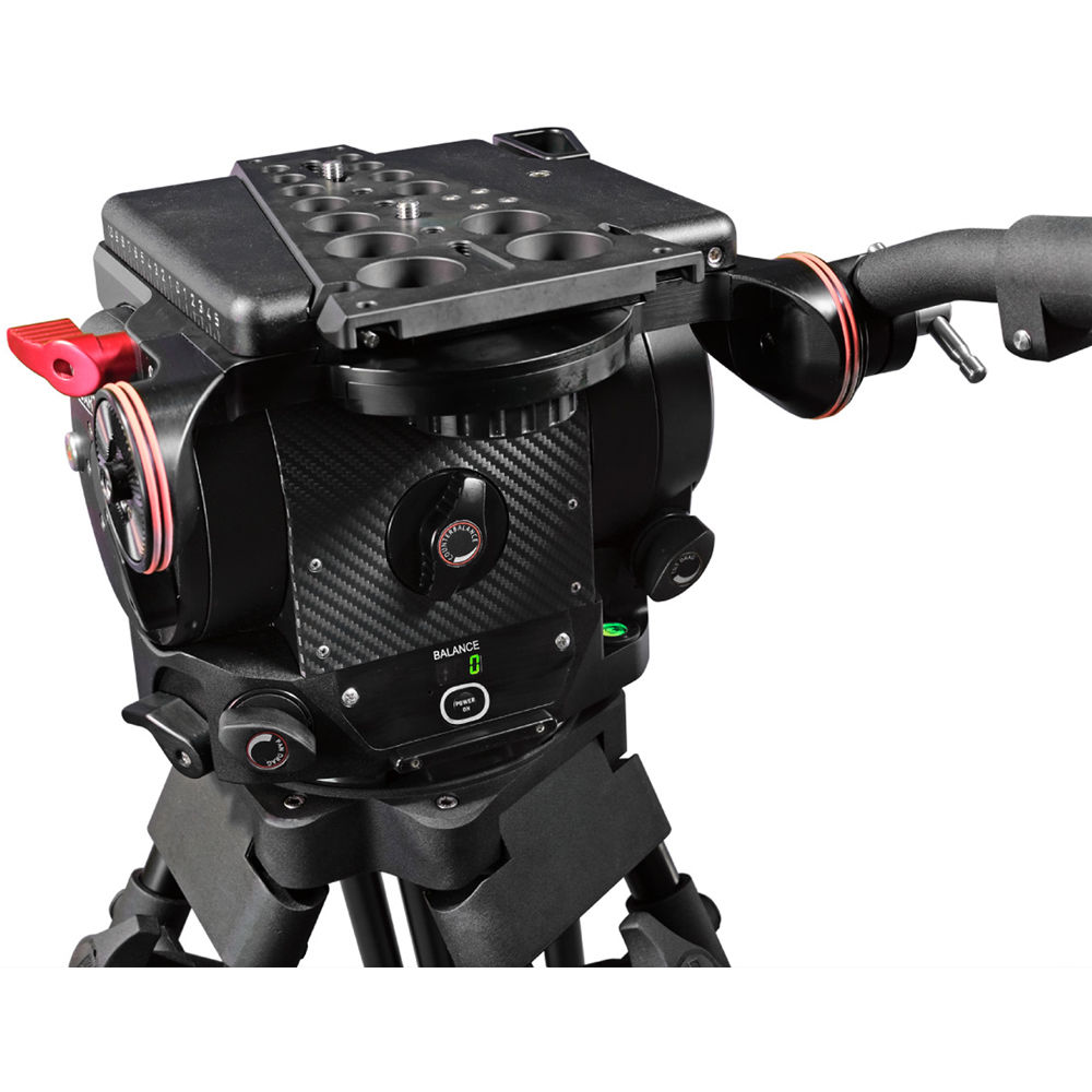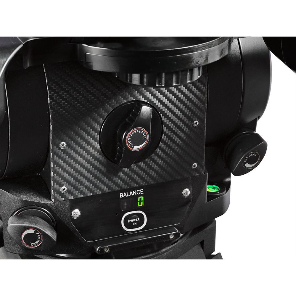 Continuously adjustable counterbalance features a digital readout, so you can precisely tune the head's response to your camera. Pan and tilt drag are each individually adjustable and continuously adjustable as well. The head pans a full 360° and tilts forward and back 65°. The built-in illuminated bubble level confirms that your fluid head is level and features a replaceable battery.