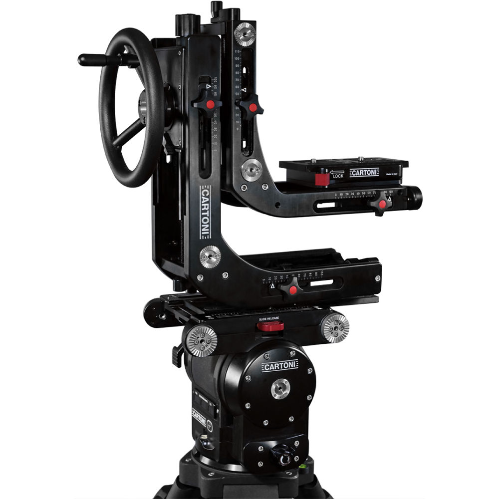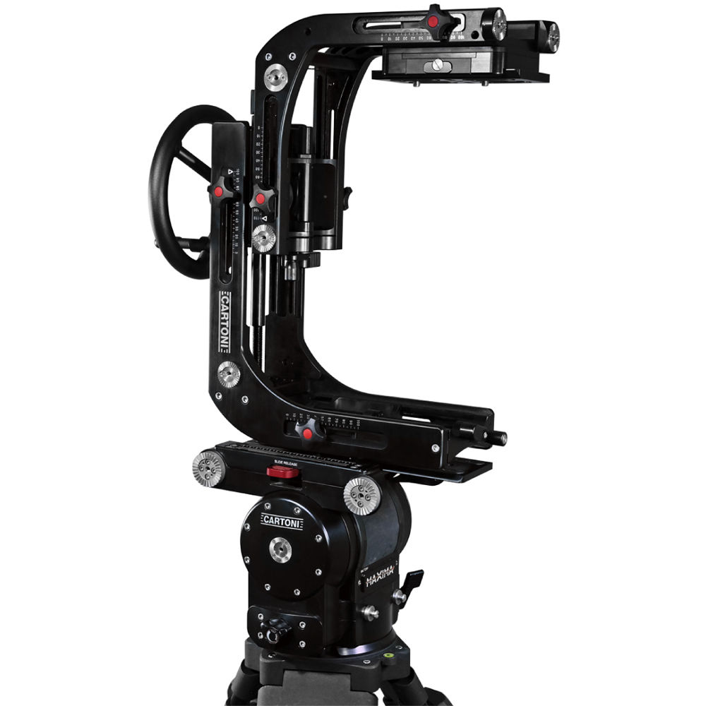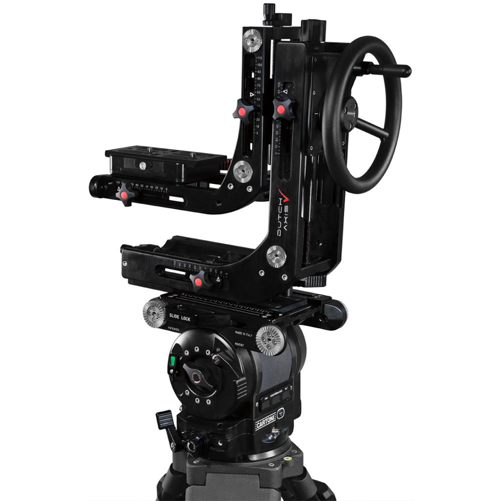 With the Cartoni Total Dutch you can add roll-axis movement to a standard cinema-grade fluid head like an OConnor 2575. Simply operate the steering wheel in conjunction with the fluid head's pan handle to achieve complex camera moves. The Total Dutch installs to the fluid head using two 3/8"-16 threads. Two counterweights are included to precisely balance your camera load for true nodal movement.
