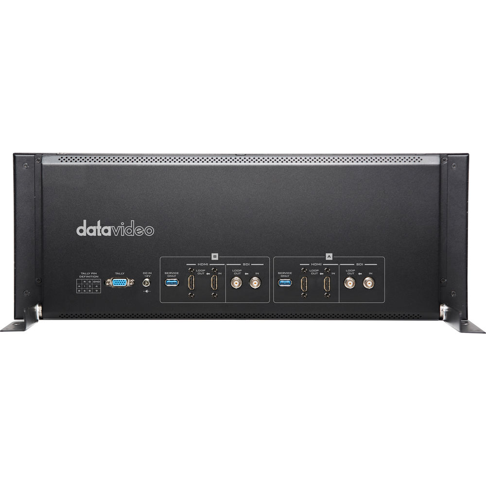 The 10" Dual IPS LCD Monitor from Datavideo is a rack-mounted monitoring unit designed for broadcast, video production, and A/V users. The monitors feature built-in vectorscope, waveform, and video signal converters. Each has one 3G/HD/SD-SDI input and one HDMI input, with loop-through output for both. Built-in signal cross conversion allows each monitor to use one input for display and the other for conversion. The 4 RU rackmount design offers a mounting solution for on-site monitoring, video walls, and production trucks.