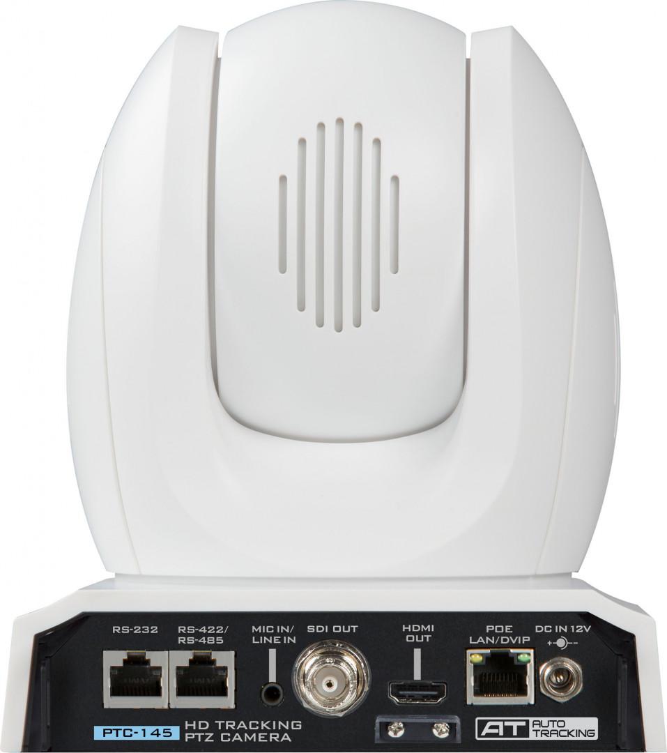 Introducing the PTC-145, a versatile PTZ camera designed for enhanced visual experiences. The 1/2.8” CMOS sensor delivers outstanding image quality with 20x optical zoom and 8x digital zoom. Offering HDMI, 3G-SDI, and streaming outputs, it connects to various devices with ease. Equipped with line-in and 3.5mm microphone inputs for exceptional audio quality.