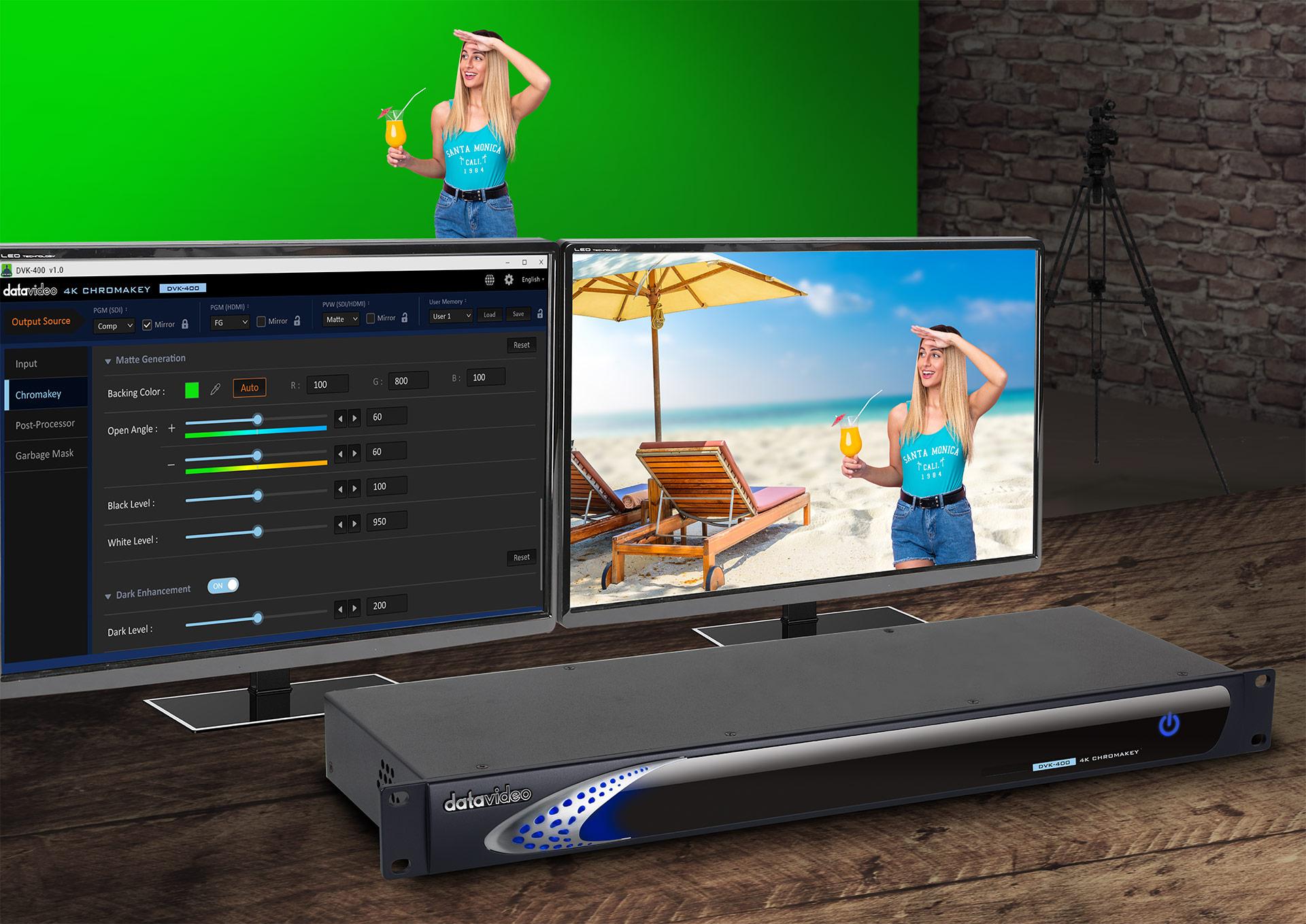 DVK-400 is a professional broadcast grade live chromakey processor that works with resolutions up to 2160p60. This real-time chromakey processor provides 4:4:4 10-bit internal processing for the best results.
