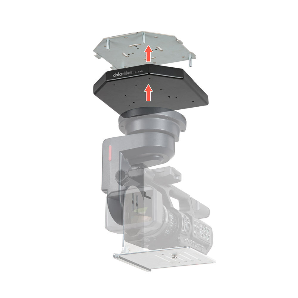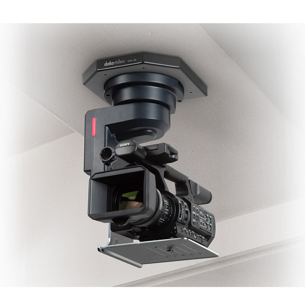The Datavideo CM-10 is a professional ceiling mount for the Datavideo PTR-10 Mark II and PTR-10T Mark II pan/tilt heads. It's made of metal and comes with expanding screws for securing it to the ceiling. The maximum weight capacity is 22 lb. The mount also features a bubble level for measuring how horizontally even a mounting surface is.