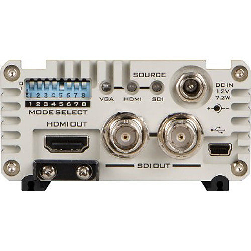 The DAC-70 SD/HD/3G-SDI Up/Down/Cross Converter from Datavideo converts between SD, HD, and 3G formats. It supports 10-bit video processing and accepts VGA, HDMI, and SD/HD-3G-SDI video input signals and automatically converts them to the selected output format. The DAC-70 supports resolutions up to 1080p60 and up to 8 channels of embedded SDI or HDMI audio. An analog L/R audio input is also provided. Thanks to a built-in mini-USB port, the converter is firmware upgradeable for support of future video formats. A 12V / 1A power supply and cord comes included.