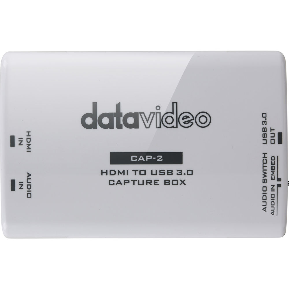 The Datavideo HDMI to USB 3.0 Capture Box allows you to capture uncompressed video with audio from your camera or deck's HDMI output on your computer for recording, editing, videoconferencing, and streaming applications. No driver installation is necessary (except with Windows 7). It features an HDMI input and loop-through output, and a USB 3.0 output. Compact in size and powered directly from a USB 3.0 port, the converter is a practical and easy-to-use USB 3.0 capture solution.
