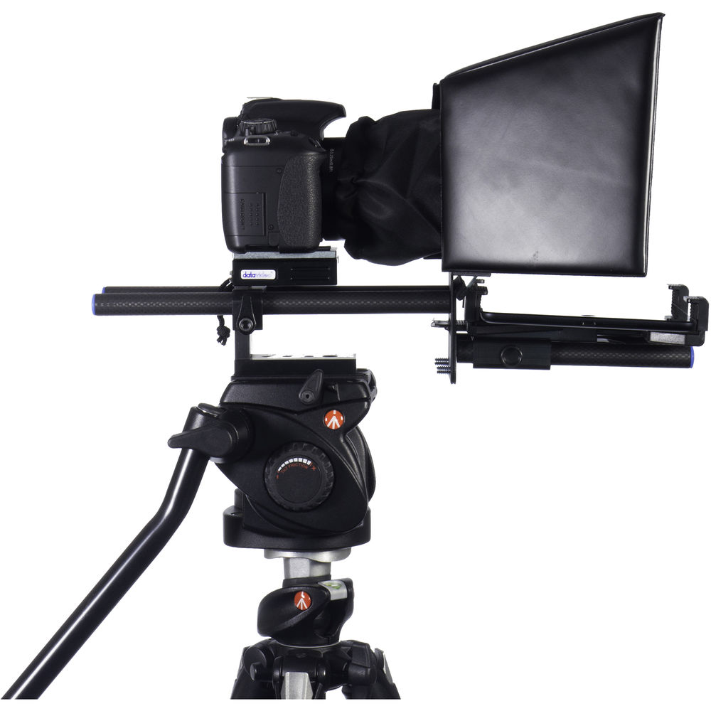 The TP-500 Prompter Kit from Datavideo helps you by converting a small tablet computer (not included) into a low cost and effective prompter. It can be used on location, or in a video studio. Prepared scripts or cue sheets can be easily copied and pasted into the DV prompter app from email and scrolled at a set automatic rate or controlled by a user with the wired/wireless remote (not included) for a more natural result. A number of clear fonts, colors, and text sizes are available for making reading easy.