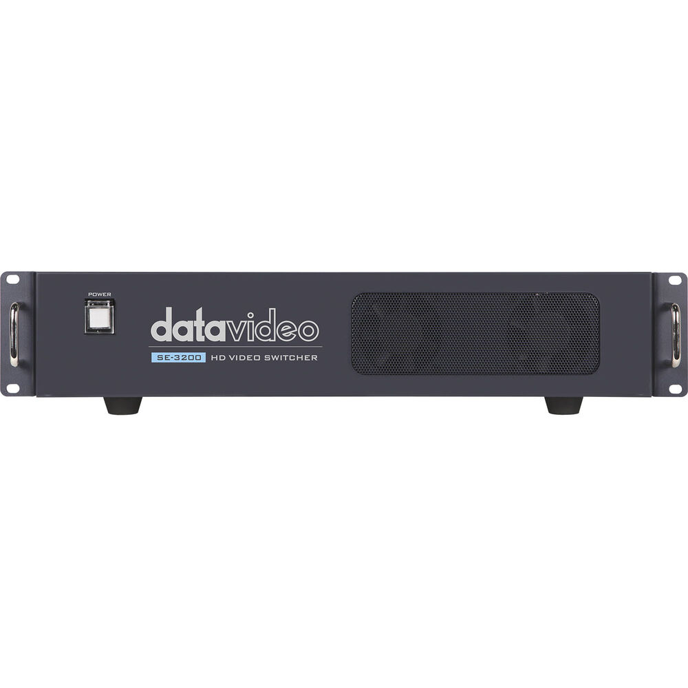 The Datavideo SE-3200 is a 12-channel digital video switcher with 1080p/60 (3G) high-definition support, 12 digital inputs including 8 x SDI and 4 x HDMI inputs with embedded audio, 6 x SDI plus 3 x HDMI outputs for connecting an HD recorder and external monitors.