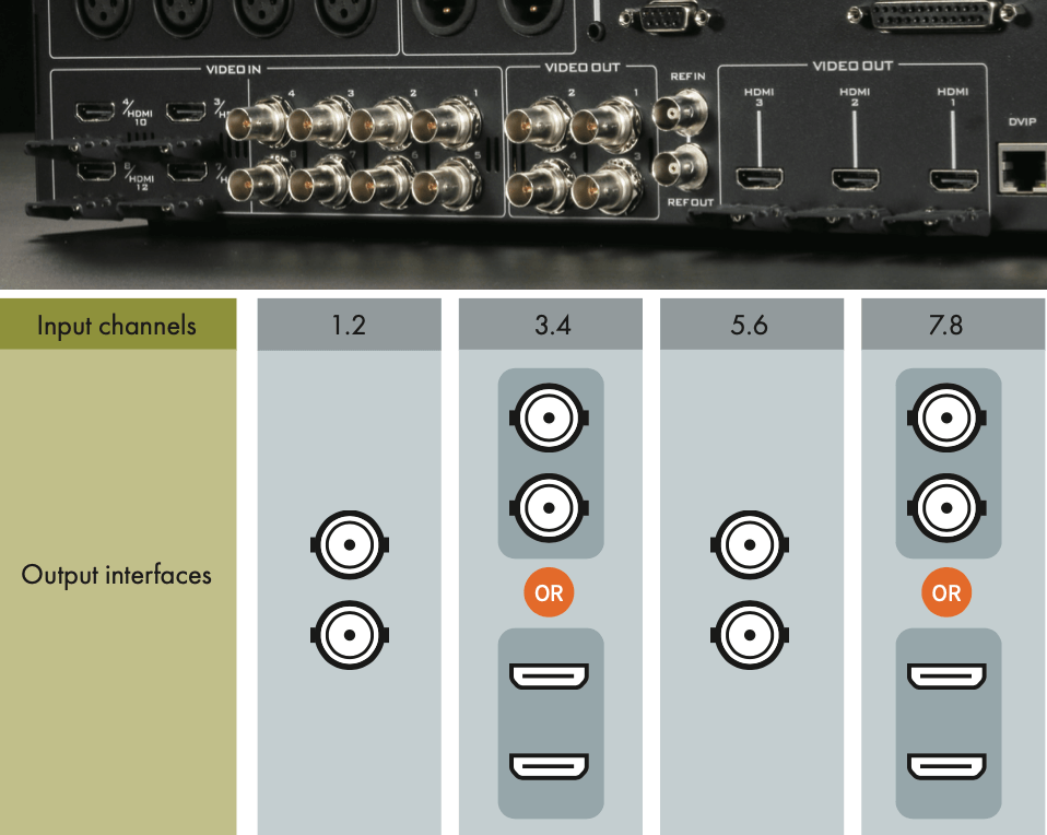 Video Input | Total 8 live inputs (select 8 from 12) 8 x 12G-SDI 4 x HDMI |