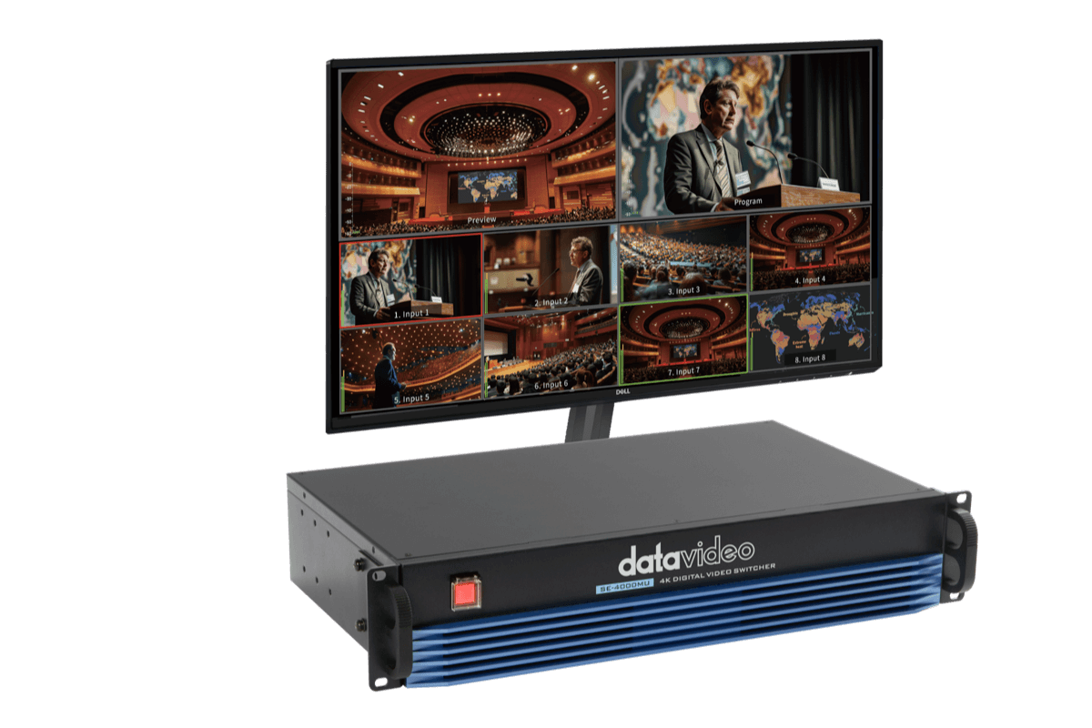 The Datavideo SE-4000MU is a versatile 12-input 4K video switcher, purpose-built for modern broadcast studios, OB vans, corporate events, and hybrid productions. Housed in a rack-mountable chassis, it integrates seamlessly into professional AV and live production environments.